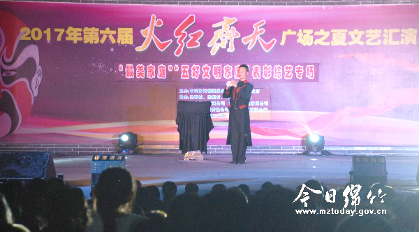 本刊消息 夏季每周星期四夜晚,已成为齐天镇群众最期待的日子,因为“火红齐天”广场之夏文艺汇演会在当天晚上举行。8月3日,又是一个星期四,齐天镇文化广场上像往常一样,聚集了众多群众,他们是“火红齐天”的忠实粉丝,从不落下一场演出。 当天晚上的演出是文康社区、圣寿村、圣新村专场,舞蹈、魔术、独唱、小品等节目内容丰富,十分精彩,看得群众兴高采烈。虽然天气炎热,但是大家热情高涨,对每个节目都报以热烈掌声。但是当晚给大家留下深刻印象的却是“最美家庭”表彰活动。 看节目让人心情愉悦,表彰“最美家庭”却让人深受教育。圣寿村7组的丁祥蓉家庭在当天受到了表彰。丁祥蓉先天性视力残疾,但是她用勤劳的双手发展养殖业,不怕累不怕苦,与丈夫艰难撑起一个家,把两个儿子培养成人,是群众眼里勤俭自强的模范。“其实我做这些都是份内事,还有比我做得更好的呢!”丁祥蓉腼腆地说。 据了解,当天晚上齐天镇共表彰了勤俭自强、孝爱和乐、亲善教子三类“最美家庭”11户。该镇相关负责人表示,在人群集中的公众场所对他们进行大张旗鼓地表彰,就是要让广大群众受到教育,要以先进为榜样,把家庭经济发展好、把邻居关系处理好。同时,该镇党委政府将在全镇大力弘扬社会主义核心价值观,为“火红齐天”这一文化品牌注入更多社会正能量。 |
