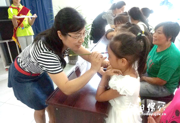 本刊消息 9月7日,清道学校为一年级新生举行了特殊的入学仪式。60多名新生家长也应邀来到现场见证孩子们这一难忘的时刻。 在欢快的上学歌中,主持人宣布“清道学校尚礼乐学新生开笔礼开始……”孩子们和父母手牵手,在4位少先队干部迎接下,踏进了学校一楼多媒体教室。 伴随着传统的三字经伴奏,孩子们接受了传统的入学礼“正衣冠”、“朱砂明智”、“孝亲敬师”。活动现场,父母为自己的孩子整理着装,背上新书包,并将孩子的小手亲自交到老师手中,学校领导和老师用朱砂在新生额头正中点上红痣,孩子们向老师恭恭敬敬地行了拜师礼。老师们用真挚的微笑、轻轻的拥抱,让现场充满温情。整个仪式不仅是对孩子们精神的洗礼,更是一次学习、生活、做人的全面教育。