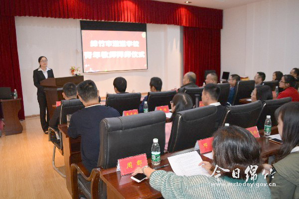 本刊消息 10月13日,为了加快青年教师专业成长步伐,提高青年教师的教育教学水平,打造国际化乡村学校,遵道学校聘请市内名师及师培中心学科教研员作为学校青年教师的指导老师,精心打造青年教师成长平台。市教育局、市师培中心、实验学校、紫岩小学、天河小学、遵道学校相关负责人及老师参加此次拜师大会。 在拜师仪式上,遵道学校12位青年教师与各自选定的导师郑重签署了导师协议书,青年教师们满怀深情地向自己的导师三鞠躬以表敬意,手捧鲜花真诚地献给自己的导师并作出庄严的承诺。 活动中,导师们表示一定会以身作则,耐心对待青年教师的请教,毫无保留地将自己的经验传授给徒弟,与青年教师共同成长。而作为徒弟的青年教师也纷纷表示一定倍加珍惜,虚心学习,刻苦努力,勇于担当,学习老教师的敬业精神和奉献精神,并将这种精神倾注在学生身上,让遵道学校的精神不断延续下去发扬光大。 据遵道学校校长俞华平介绍,青年教师的成长关系到学校的未来,开学初遵道学校对新教师进行了入职培训,接着举行了青年教师校内“师徒结对”活动,其目的是为新教师搭建向老教师学习的平台,尽快适应教学工作。开展此次拜师仪式,旨在以此次活动为契机,以骨干教师的帮助和专家的引领指导,帮助学校青年教师实现“一年站稳讲台,三年独当一面,五年成为骨干”的目标,同时增进校与校之间的友谊,促进学校又快又好地发展,为遵道国际化乡村学校发展贡献更大的力量。