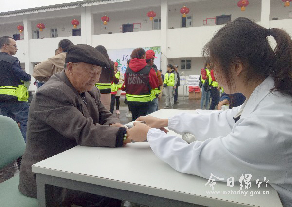 本刊消息 10月17日上午,秋风瑟瑟,寒雨潇潇,土门镇敬老院院坝里却处处上演着温暖的场景。当天是全国第四个扶贫日,在这个特殊的日子里,市委宣传部等联系土门镇的市级部门与爱之援义工协会的志愿者们来到这里,看望慰问敬老院老人,并走进贫困户家中,与他们互动娱乐、剪发、打扫卫生,将温暖送到老人们的心坎上。 上午一大早,市级部门的工作人员和志愿者们就赶到了活动现场。老人们听说这个消息,早早坐在院坝里等待他们的到来。活动中,志愿者们一边为老人献上丰富多彩的文艺节目,一边和老人们谈心聊天,嘘寒问暖,发放爱心物资,让老人们切实感受到了关怀和温暖。随后,志愿者们纷纷换上“工作服”,有的拿起剪刀开始为老人义务理发,有的给老人们包起饺子,土门镇卫生院的医护人员还为老人们测量起了血压。 经过志愿者娴熟的技艺、细心的修剪后,老人原本有些凌乱、斑白的头发变得干净、整齐,嘴里吃着热气腾腾的饺子,老人们的脸上写满了幸福的笑容。老人王长林高兴地说,“今天不仅看到了精彩的节目表演,又吃饺子还有这么多人陪着我们,我们打心底里高兴。感谢党和政府,还有社会各界的爱心人士,让我们老有所乐。” 20多岁的刘娇今年5月加入到爱之援义工协会,参加这样的慰问活动,她也是看在眼里,高兴在心里。她说,能够和老人们分享开心,她觉得非常有意义。 当天,大家还分成4个志愿服务小组,进村入户,给贫困户打扫卫生,宣传相关扶贫政策,送去了慰问物资,让贫困户们切实感受到了党的温暖关怀。