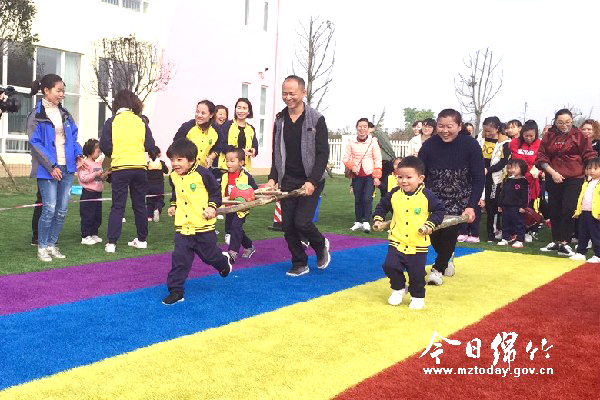 本刊消息 为培养幼儿团队意识和集体精神,增进家园、亲子间的情感交流,日前,城东(四幼)在园区运动场举行了首届“幼儿体育节”活动。全园近600余名幼儿及其家长参加了小小消防员、套圈高手、我是小姚明、夹夹乐、两人三足等亲子游戏。(图片由四幼提供)