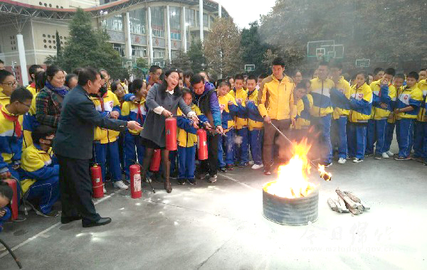 11月14日下午,绵竹中学初中部举行了冬季安全演练,对学校师生进行了地震逃生和火灾疏散演练,随后还进行了火灾扑灭操作体验。