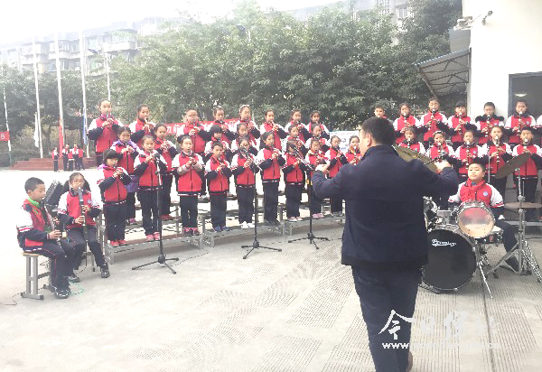 12月21日,我市天河小学举行了主题为“弘扬全员体育运动精神,发展健康生活核心素质”的第四届“小幼结合,同享快乐”全员运动会。图为学校迎宾队用竖笛演奏《运动员进行曲》。