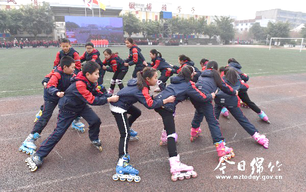 本刊消息 12月27日,紫岩小学举行首届迎新年体育展演,活动主题为“奔跑吧,紫岩”,旨在让每一位孩子在体育锻炼中体验快乐,磨练意志,收获成长,以崭新的姿态迎接新一年的到来。当天,近2000名“体育健将”用整齐划一的动作,热情奔放的律动,灿烂迷人的微笑欢迎来自全国学校体育联盟(教学改革)专家组的现场指导。 气势磅礴的《紫岩体育赋》拉开了当天展演序幕,“跳皮筋”“编花篮”“拉丁舞”活泼欢快,动感十足,带领大人们仿佛回到儿时欢乐的时光,点、勾、踩、踏等标准动作充分展示了运动的力与美。“功夫少年”“素质操”高强度、高难度的精彩动作赢得阵阵掌声。“百花齐放”1+4体育联盟展演融新颖、美妙、整齐为一体,在运动场上描绘出一幅气势磅礴的画卷。“一年级体育天天练”萌动、可爱。震撼的表演,完美的呈现,灿烂的笑容,展现了紫岩学子的豪迈与自信。 全国体育联盟主席毛振明等专家对展演项目给予高度评价,并提出意见和建议。 本次体育盛会还现场揭晓了“紫岩2017年十件大事”和“紫岩十佳家长”。