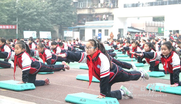 寒冬时节,记者走进天河小学,此时正值体育活动时间。当下课铃声响起后,伴随着下楼音乐的节拍,学生们迅速地从教室走出,参与自己喜欢的项目。乒乓球、足球、篮球、花式跳绳等体育活动在这里如火如荼地进行着;而跆拳道、健美操等一些在中学显得很时尚,前沿的课间活动也成了这里的特色展示……环顾四周,每个学生或跑或跳、或站或蹲,精神抖擞,神采飞扬,他们在锻炼中收获健康与成长。 “体育教育是素质教育的重要内容,更是学校文化的重要组成部分。”天河小学校长王琴介绍说,自学校2015年12月加入“全国学校体育联盟(教学改革)”绵竹实验区后,全面推进学校体育改革。两年来,随着体育联盟的理念和“一校一品”、“全员运动会”、“特色操”等项目逐步推进,学校的体育文化建设、锻炼理念、体育教学、师生面貌等方面都有了质的飞跃,使“和雅”特色体育深化改革收获了累累硕果。 扎实体育常规 深化课堂改革 学校体育是提高学生身体素质和学生全面发展的突破口,也是落实“以生为本、健康第一、发展至上”教育思想的具体要求。作为全国体育联盟教改实验学校,天河小学历来有着优良的体育运动传统,在“和而不同”的和雅文化核心理念引领下,扎实体育常规,积极开发特色项目。 “体育教育改革,课堂是主阵地,课程是新鲜血液,要让学生爱上体育,必须要创新。”王琴告诉记者,为了弥补学校没有分年段的体育教材这一空白,学校体育组不仅创编了《天天体育》校本教材,并且开设了跳绳、足球、武术、跆拳道、腰旗橄榄球、特色大课间等一系列特色体育项目,受到了学生家长一致好评。同时学校《指导小学生家庭体育锻炼实践与研究》已立项为省级科研课题,在全校掀起了运动的热潮。 深化体育教育改革以来,运动健康的理念影响了每一个天河人,学校多彩的民间社团如雨后春笋般生机勃勃。周二的足球社团、周三的书法沙龙、书香社团、和雅印象工作室……这些有益身心、让生命多姿多彩的民间社团活动,不仅是本校老师最爱,同时还吸引了众多家属、亲属参与,完美实现了团队的深度融合!