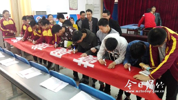 3月13日下午,富新初级中学2018届誓师动员大会在该校阶梯教室举行。学校向全体初三师生发出备战中考的动员令,鼓励大家以坚定的信念、永不言败的精神,向中考作最后的冲刺。