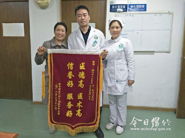 本刊消息 日前,一位患者家属手捧一面印有“医德高、医术高、信誉好、服务好”的锦旗来到华西绵竹医院神经外科,感谢全科医护人员的精心诊治和精细护理。简短的字语,鲜艳的锦旗,彰显的是医患之间的真诚与和谐,是对医护人员无私奉献的最好回报。 患者张大爷今年70岁,3月20日在家不慎跌倒,由于头部着地,当即便四肢抽搐,口吐白沫,晕了过去,被送往当地卫生院治疗未见明显好转,由120急诊送入华西绵竹医院神经外科。入院诊断为外伤性癫痫大发作、2型糖尿病。科室温江副主任医师根据病情为患者制订了详细的治疗方案。 因张大爷是精准扶贫户,无力支付医药费,科室严格落实精准扶贫政策,在保证全力救治的情况下,严格控制住院费用。经过近10天的治疗,张大爷逐渐康复,顺利出院。其家属为了表达感激之情,亲手将锦旗送到了主治医生和护士长手上。 长期以来,华西绵竹医院神经外科严把医疗质量安全关,不断降低患者看病成本,以优质、专业、人性化的服务,赢得了患者群众的信任及一致好评。
