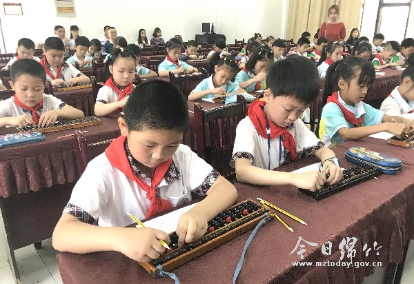 本刊消息 为弘扬中华民族优秀珠算文化,大力发展珠心算教育事业,5月29日,由市教师培训中心、市珠算协会联合主办,大西街小学承办的市第六届珠心算小博士争霸赛在大西街小学举行。来自全市5所珠心算实验学校的200余名小选手参加了此次比赛。 当天参加比赛的为小学组一、二、三年级,内容分为听算和看算。随着比赛正式拉开帷幕,赛场上,小选手们个个全神贯注,镇定自若。他们有的双手同时拨打算盘,有的一手答题,一手在桌上划来划去,小小的算盘在他们的手中上下翻飞,珠算拨撞声此起彼伏,比赛现场气氛紧张而激烈。在二年级学生比赛中,来自大西街小学的何皓宇同学表现出色,在一连串的数字加减之后,他立即将答案写在答题卡上,整个答题时间不足5秒,脑袋里像是装着一把“活算盘”。 经过激烈角逐,当天共评出一、二、三等奖。据悉,珠算作为中华民族传统文化的瑰宝,具有启智益慧的现代教育功能,已经获得世界范围的普遍认可。所谓珠心算,即珠算式心算,是将算盘的盘式、档次及算珠的浮动变化描绘到脑子里,来完成珠算运算,可以开发孩子的大脑。