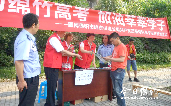 企业、单位:爱心助高考 传递正能量 6月7日,又一批莘莘学子满怀对未来的期望走进高考考场。考场外,众多爱心单位、企业和团体摆摊设点,为考生准备消暑解渴的矿泉水、文具以及应急药箱,也为考场外等候的家长提供休息乘凉的场所,过往行人纷纷为他们的爱心之举点赞。 “大姐,来喝口水吧,太阳出来了,这里凉快。”上午8点半,记者在我市绵竹中学考场外看到,陪考家长三三两两地站在一起,不时满怀期待地张望着考场。而在学校对面,剑南春、中国移动、工商银行、绵东供电公司、万卷书城等10余家爱心企业和单位正忙碌不停的为陪考家长提供贴心服务。 联通公司工作人员黄晓琴告诉记者,他们早上六点就来到校门口做准备,希望为提前过来熟悉考场的学生和家长提供候考服务。“高考是人生重要的转折点,社会和企业有责任为学子们尽一份绵薄之力。”在绵东供电公司党员高考志愿服务队前,身穿红马甲的志愿者们,正在为家长详细讲解高考应急保电的相关知识,以确保他们在高考期间安全用电。“作为家长,这些爱心企业的行为很让我感动,也许一瓶水并不能代表什么,但大家的心情都是一样的,希望学生能够顺利完成高考。”家住龙岭华府的家长甯金艳说道。 本刊记者 唐妮 文/图