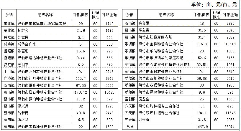 绵竹市农业局关于2018年省级财政现代农业生产发展工程中农业产业发展项目中的水稻直播补贴公示