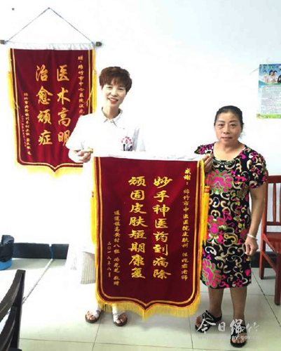 本刊消息 近日,记者在市中医医院采访时看到,该院皮肤科诊断室内,挤满了前来咨询和就诊的患者,大家都急切地期待着皮肤科主任汪兆君尽快帮助医治皮肤问题。这时候科室里走进一个人,兴冲冲地将一面鲜红的锦旗送到汪兆君的手上,口中不停地说着感激的话。 “我因为面颈部的环状红斑、鳞屑,瘙痒了一年多,去了很多地方医治却没什么效果,就连华西医院也去了,依旧不见好转。”患者冯光芝告诉记者,皮肤瘙痒难忍,苦不堪言,严重影响了她的正常生活,后听人介绍市中医医院皮肤科的汪兆君医生治疗皮肤病很有一套,于是她抱着试一试的态度前来医院就诊。汪兆君仔细查看了她的病情,根据多年的经验,给她开药并耐心指导,病情很快得到控制,一段时间后竟然痊愈了。 为表达内心的喜悦和感激之情,冯光芝专门跑去定制了锦旗,她说:“得病一年多,身上又痒又难看,门都不敢出,觉也睡不好,再治不好连活下去的勇气都没有了,太感谢汪医生了,医术高明、态度又好,药到病除,让我又可以开开心心的生活了”。面对患者的信任和赞誉,汪兆君医生表示,皮肤病会对患者在身体和精神上造成很大的困扰,特别近些年受饮食、气候等多种因素影响,出现了很多难以治愈的皮肤病。作为皮肤科医生应不断学习,更新知识,在诊疗过程中多一些耐心、细心,才能更好地为患者解除疾苦。