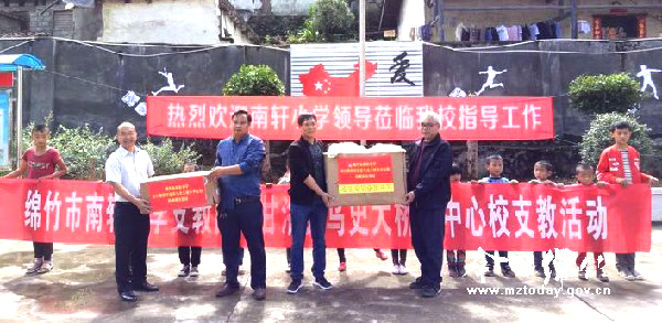 本刊消息 为传递先进的教育理念,架起甘洛与绵竹友谊的桥梁,近日,我市南轩小学支教团走进甘洛开展支教活动,助力山区贫困儿童就学。 支教团一行实地参观了甘洛县苏雄片区寄宿制学校、阿兹觉中心小学、乌史大桥乡小学三所学校,详细了解了当地学生就学情况,还就教育教学管理、校园文化建设、学校功能室建设与管理、义务教育均衡发展等方面进行了详细交流。南轩小学支教团为三所学校捐赠了15000余元的体育器材。 支教团教师蔡华剑、俞华、曾令翠、彭锬春分别给甘洛师生展示了音乐、体育、语文、数学四堂观摩课。曾令翠老师执教二年级语文绘本课《听听,童谣的声音》,观摩展演课堂上,优美的童谣视频,娓娓动听的诵读声,图文兼美的童谣PPT打开了甘洛孩子们课内外阅读的大门。曾老师用听、诵、写的方法引导学生阅读童谣,在轻松愉悦的氛围里感悟童谣的趣味和韵味。孩子们积极参与,乐于展示,并且大胆尝试编写童谣,整堂课趣味盎然,充满活力。 四堂观摩课结束后,当地老师纷纷表示,将认真学习南轩小学优秀的教学方式方法,加强互动交流,争取让更多大山里的孩子享受到义务教育均衡发展的阳光。