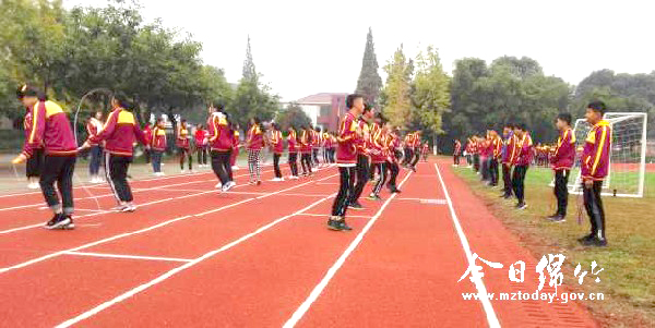 本刊消息 10月24日上午,富新初级中学以“放飞青春、激情飞扬”为主题的第45届秋季田径运动会在学校运动场拉开帷幕。 上午8点30分,随着运动员进行曲的响起,鼓乐队、鲜花队、彩旗队、各班运动员队、教师方阵队一一登场,展示了全校师生青春活力、激情自信的风采。开幕式上,师生陆续登场展演太极拳、双节棍,博得阵阵喝彩,健美操、广播体操等比赛将展演推向高潮。 据了解,此次运动会将举行三天。除传统的田赛和径赛比赛项目外,还将开展集体跳绳、集体立定跳远等集体项目和背球接力赛、袋鼠接力赛等趣味项目,并新增了排球自垫、8字绕跳长绳等趣味项目,还有教师集体趣味项目比赛。这些项目的开展,将让“快乐体育、全员参与”的理念更加深入到每一位师生的心中,展示学生的青春与活力,充分发扬师生竞争拼搏的精神,营造快乐锻炼、健康向上的校园氛围。