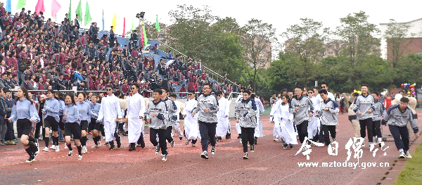 本刊消息 别致的服饰、奇特的造型、艺术的氛围,10月24日举行的绵竹中学第五十九届体育节开幕式上,花式入场的入场式融体育、艺术、历史、法制宣传等为一体,可谓“花样百出”。 该校今年的体育节开幕式像前几届体育节入场式一样,采取“体育+”的方式让全校师生在轻松愉悦的气氛中参加体育锻炼。各班创新创意的入场式,吸引了师生的目光,有的忙着用相机拍摄,有的用摄像机拍摄,有的用手机拍摄,最终目标是把精彩留下。 据悉,在为期3天的体育节中,活动以“体育凝聚实力,体育创造辉煌”为主题,将开展40×40米同心协力比赛、20×40米障碍赛、引体向上、仰卧起坐、30×30米袋鼠跳接力、篮球技巧挑战团体赛、跳高、跳远、4×100米接力比赛、20X50米迎面接力和100米、200米、400米、800米和1500米等项目的比赛。