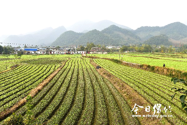 这是记者日前在遵道镇高安村拍摄的蔬菜种植基地。眼下,这里种植的蔬菜垄沟与远处的山峦构成了一幅美丽的乡村图景。