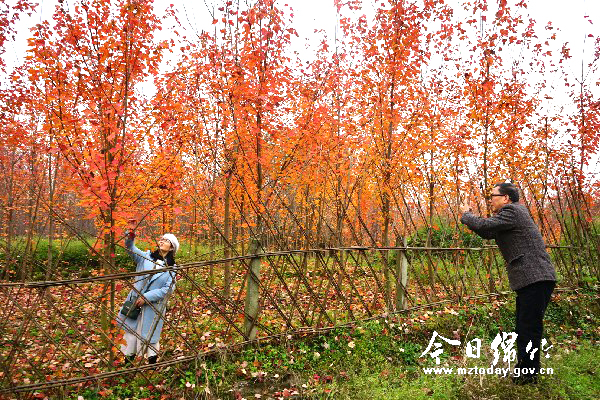 本刊消息 “停车坐爱枫林晚,霜叶红于二月花”,时值初冬时节,正是观赏红枫的好时节。在遵道镇双泉村300余亩的红枫基地里,一簇簇金黄色的红枫叶在冬日暖阳的照耀下格外美丽动人。 11月22日,记者走进双泉村8组,远远望去,红叶漫山,层林尽染。枫树脚下,红色的叶子,黄色的叶子,都懒懒地躺在青翠的草丛里,宛如一幅绚丽多彩的油画。游客们一边欣赏着美丽的“枫”景,一边拿着相机、手机拍照留念。“我们从网上得知遵道镇双泉村有一片红枫林,就开车来看看。”来自成都的游客谭莅凡说,好多地方的枫叶已经过了最佳观赏期,没想到双泉村的这片红枫林竟是如此绚丽夺目。“今天天气好,我们一家人特意来这里拍照,呼吸新鲜空气,感觉挺美的。”游客杨秀说,她的一位亲戚就住在附近,每到初冬时节,就会电话邀请他们前来游玩观赏。 据了解,每年11月到12月初是红枫叶的最佳观赏期,该种植基地从2013年建立到现在,已繁育红枫苗木300余亩。这种红叶是美国红枫,3月末至4月开花,花为红色,因为对水份海拔等要求较低,在各种类型的土壤中都能生存,所以非常适合公园、小区和道路绿化美化栽种。据悉,早在2015年,双泉村的红枫就已经成功地移栽到什邡红峡谷景区,并带火了当地的旅游经济。 “这段时间,慕名前来观赏美景、拍照留念的游客很多,特别是周末,成都、德阳等地的游客更是纷至沓来。”双泉村主任李伦平告诉记者,省道216线的规划建设刚好穿过这片红枫林,他们将落实乡村振兴战略,争取将此处建成一个大规模的红叶观赏基地,在吸引更多游客前来观光的同时,带动乡村旅游业发展,带动村民致富奔小康。