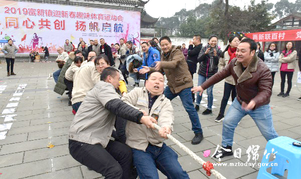 1月31日,富新镇在该镇同心广场举行了2019年迎新春趣味运动会。活动由该镇文化站、镇机关工委、新源电器和文永村共同承办,相关人员参加了运气球、拔河、踩气球、接力纸杯、抖乒乓等10个趣味运动项目。