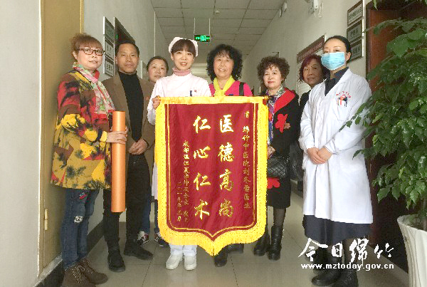 本刊消息 “我专程从成都赶过来,坐了两个小时的车,就想当面和刘医生道一声谢谢。”3月20日下午,成都市温江区的彭女士专程赶到绵竹,将一面写有“医德高尚 仁心仁术”的鲜红锦旗送到了市中医医院内科住院部。 不久前,彭女士一家从成都来绵竹旅游,12岁的外孙女在路上突发心悸、头晕、呕吐,眼看外孙女危在旦夕,他们立即驱车赶往市中医医院就诊。内科副主任刘冬雷立即对孩子进行了检查,发现孩子出现嗜睡,皮肤花斑,四肢冰凉等情况,连血压都测不出,通过急诊心电图检测,刘东雷初步判断患儿为心律失常导致血流动力学障碍,需要立即进行抢救。 由于患儿仅有12岁,且以往病情不详,使用药物及心脏电复律风险太大。刘冬雷结合自身多年的临床经验,当机立断,决定使用“修订版瓦氏动作”对其进行治疗。随后,他取来一只10毫升的注射器,去掉针头,协助患儿取端坐位,叮嘱其深吸气然后用力吹针筒,随后,协助患儿平卧并抬高双下肢……经过一系列动作之后,患儿的心率开始下降,血压恢复了正常,面色逐渐转为红润。一家人看着孩子转危为安,热泪盈眶。 “回想起当天那一幕,我到现在都还觉得胆战心惊,要不是市中医医院的医生技术水平高,后果不堪设想。现在外孙女恢复得很好,周一就能返校上课了,我代表全家人感谢绵竹市中医医院,感谢刘老师及内科的医护人员们。”彭女士含泪说道。