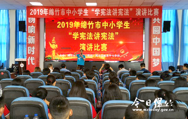 本刊消息 4月28日、29日,由市教育局主办的2019年绵竹市中小学生“学宪法讲宪法”演讲比赛分别在市职中和新市学校举行。 在市职中的初、高中组(含职中)比赛现场,选手们从小事说起,从细微处挖掘,一句句饱含深情的话语,一个个典型鲜活的事例,表述了自己对宪法的认知与理解,既有真情实感,又有理性思考,选手们语言流畅、思路清晰、见解独特,演讲中或慷慨激昂、激情澎湃,或娓娓道来、发人深省。经过两轮的比拼,经评委认真评选,两个组分别评选出一等奖、二等奖、三等奖和优秀奖若干。据介绍,高中、初中和小学组荣获第一名的学生,还将组成绵竹市“学宪法讲宪法”演讲代表队,参加德阳市演讲比赛。