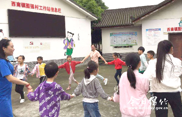 本刊消息 5月18日上午,西南镇图强村会议室内座无虚席,20多个孩子正在参加年画授课活动。 “绵竹年画构图讲求对称完整饱满;色彩上采用对比手法,设色单纯艳丽,强烈明快;线条讲求洗炼流畅,刚柔结合;而夸张、变形、象征、寓意的造型,更具诙谐活泼的效果……”讲台上,年画艺人胡明贵正在为孩子们讲述绵竹年画的构图、色彩搭配要领,同时还一边操作示范,让孩子们观摩。 年画授课结束后,来自南轩小学的老师又开始为孩子们辅导作业。“以前周末除了做作业,就是和小伙伴们玩,现在的假日生活更丰富了,有专业老师来给我们讲课,辅导我们作业。”李承轩小朋友告诉记者。 近年来,西南镇强化关心下一代工作,今年启动了西南镇“社家校”有机结合大教育工作,依托西南镇“青少年教育实践基地”,在各村广泛开展青少年关爱活动,探索出学校、家庭、社会联动的“社家校”共建模式。该镇针对青少年特点,在节假日开展年画绘制、舞蹈体育活动、作业辅导以及社会实践活动,丰富孩子们节假日生活。 活动受到了家长们的热烈欢迎,大家纷纷表示,“社家校”共建模式不仅杜绝了孩子节假日懒散症,还学到了丰富的课外知识。”