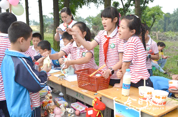 遵道学校:本刊消息 为欢庆“六一”儿童节,5月31日,遵道学校举行了“童享六一 爱满校园”爱心义卖活动。 活动现场,各班提前精心布置了各有特色的“商铺”,参加义卖的同学将之前准备的义卖物品、桌子、海报等摆上摊位,每个商铺前都安排了售货员、推销员、记账员、环保员和保安人员。循着各式各样的叫卖声,记者看到各商铺货物琳琅满目,除了书籍、文具、小玩偶、书法作品等丰富多样的商品外,独具特色的经营方式更是吸引了众多师生前来献爱心,有展示才艺的、有扮成卡通人物来吸引顾客眼球的,还有的“流动商家”带上自己的“商品”到处推销。 据了解,此次义卖共设18个摊位,所售商品均为学生自行收集的家中闲置物品或自制小手工,本次爱心义卖所筹善款将用于资助学校贫困学生。活动中,学校还对“零废弃校园建设先进个人”以及“孝心少年”进行了表彰。 本刊记者 李露平 文/图
