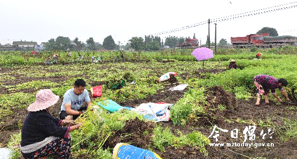 本刊消息 6月24日,细雨绵绵。在兴隆镇灵桥村的川芎种植基地里一片欢声笑语的景象,100余名村民伴随着空气中飘荡的中药材独特香气,分散在田间忙碌着。只见有的拔苗、有的装袋、有的忙着搬运装车,就连村组干部也没有闲着,纷纷加入川芎采收的队伍中,一眼望去到处都是忙碌的身影。 家住灵桥村2组的周福珍正在田里忙着将采收好的川芎和苓种分别装袋,尽管已临近中午,但她和同伴们丝毫没有打算收工回家。“多劳多得,4毛钱一斤我得多采收些,争取今天挣够100元。”周福珍告诉记者,她是村上的一名建档立卡贫困户,由于身患疾病加上年龄偏大,外出务工不太现实,趁着川芎种植基地的成熟时节,她来田里帮忙采收,一天能挣80至100元不等的劳务费。周福珍乐呵呵地向记者算了一笔账,劳务费以计件的方式计算,4毛/斤,从早上7点忙到下午5点左右,能够采收200斤左右,收入在80元左右,从6月16日开始采收到7月20日左右结束,她能挣2000元左右的劳务费。 而在另一边,村民李能全正忙着将收好的川芎过筛,他一边将川芎的泥土筛掉,一边将筛好的川芎放到烘房烘干。李能全说,从川芎的下种再到采收,他们这些上了年纪闲赋在家的中老年人,以及精准扶贫户便会来到田里、烘干机房里“上班”,这段时间正赶上大丰收,他每天在烘干机房忙碌能挣到100至120元的工资。虽然一天下来累得直不起腰,但看着源源不断的收入,再累也值得。 村民口中的川芎种植基地是兴隆镇灵桥村为壮大村集体经济,经过多方考察于2018年8月成立的兴联种植合作社,并以村支部的名义注入部分资金入股,流转400余亩土地,其中280余亩土地用于种植川芎,着力打造以川芎为主的集体经济产业发展示范基地。为确保川芎的品种和质量,川芎的种子、技术、化肥以及除草治虫的农药均由药材收购商提供。为了保证种植川芎不亏本,合作社还与药材收购商签订了合同,约定了川芎和苓种的保底价。 “今年川芎的行情为2元/斤,苓种为1.9元/斤,预计1亩田能够采收1700余斤川芎,2300—2500斤的苓种。”据该村第一书记高镔告诉记者,趁着近段时间天气凉爽,村组干部和村民们一起正在加班加点地进行采收,今年基地的川芎产量预计60多万斤,总收入能够达到150—160万元。其中支部注入资金所得的分红,将一部分用于村里公益事业、基础设施建设、村上环境改善以及办公费用帮补等,另一部分将用于扩大川芎种植面积,发展川芎产业,同时,鼓励村民加入合作社,共同参与经营管理。村上希望把村民有序、合理地组织起来,充分发挥村民的生产积极性,带动更多的村民增收致富。