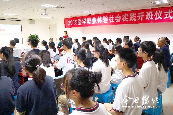 本刊消息 7月19日下午,华西绵竹医院——绵竹中学2019医学职业体验社会实践开班仪式在华西绵竹医院举行。 开班仪式上,华西绵竹医院与绵竹中学相关负责人为学生代表授工作牌,同学们共同宣读了医学生誓言。在接下来的两周时间里,来自绵竹中学的45名学生将深入华西绵竹医院门诊科、急诊科、消化内科等科室,近距离了解体验医生职业,开展志愿服务活动。 据华西绵竹医院相关负责人介绍,医院与学校都是社会公益性单位,是传递社会正能量的重要场所。去年8月,华西绵竹医院成为绵竹中学共建志愿服务实践基地,通过“医校共建”搭建平台进行资源共享,一方面提高志愿者服务层次,让学校青年志愿者在服务和学习过程中真正了解医院及行业发展,做好高考志愿的选填及职业生涯规划。另一方面也借助于医院这个关联千家万户健康的特殊机构,培养中学生的爱心奉献意识,使青年学生在为就医患者提供具体、细致、文明、健康的人性化服务与关怀中提升自己。 今后,华西绵竹医院将把医校共建志愿服务实践基地工作作为常态化工作来开展,给同学们提供一个广阔的志愿服务平台,让大家将学习到的精神内化为自己的品行,立身示范积极向上。