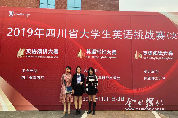 本刊消息 11月1日至3日,由四川省教育厅主办的四川省大学生英语挑战赛顺利举行。本次大赛共吸引全省70所高校百余名选手参赛,来自四川天一学院的大学生们表现不俗,佳绩连连。 此次英语挑战赛的演讲主题是“My Big Story in 2049”。比赛中,选手对祖国未来三十年的发展进行了大胆推测,展开了丰富想象,深入思考如何在未来三十年与祖国共同书写大故事、取得大成就,深情而激昂的演讲将比赛不断推向高潮。同时进行的还有写作与阅读大赛,比赛形式为闭卷答题。 来自四川天一学院的学生卿玥、张煜钒、刘文丽分别获得了英语演讲大赛(高职高专组)三等奖、英语写作大赛(高职高专组)优胜奖和英语阅读大赛(高职高专组)优胜奖;教师李群、陈翰和余萍则分别获得优秀指导教师奖。