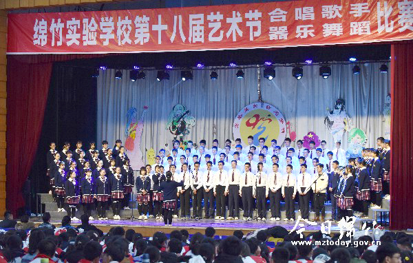 12月3日,主题为“青春舞台,音为梦响”的绵竹实验学校第18届艺术节隆重开幕。开幕式上,学生们进行了校园歌手、舞蹈、器乐、合唱等内容的展示展演,期间还将举行现场书画展。