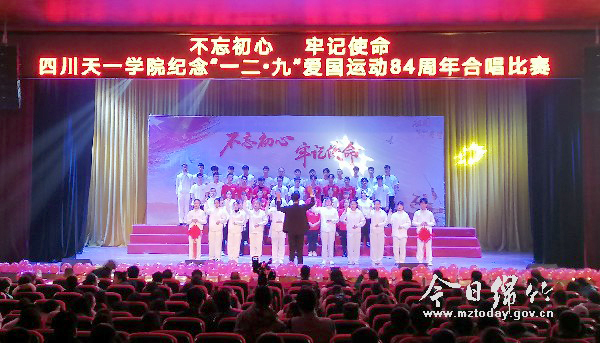 12月9日晚,四川天一学院开展了主题为“不忘初心,牢记使命——纪念‘一二·九’爱国运动84周年”大型合唱比赛。800余名师生相聚歌声中,共诉爱国情怀。