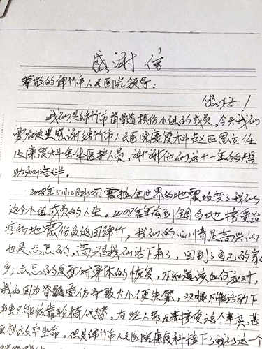 一封来自脊髓损伤自助小组的感谢信