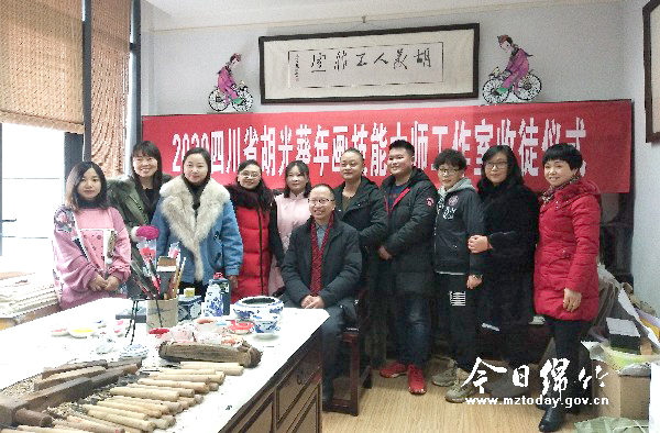 本刊消息 1月12日,胡光葵年画技能大师工作室收徒仪式在绵竹年画博物馆举行,绵竹文旅局局长钟声、绵竹年画大师胡光葵及其徒弟们参加了此次活动。 胡光葵是国家级非物质文化遗产项目绵竹木版年画的省级代表性传承人、四川省工艺美术大师、德阳首席技师、绵竹年画博物馆馆长,他从事绵竹年画传承、保护、研究、创作工作至今已近30年。他擅长绵竹木版年画的传统制作技艺,自创了墨彩年画技法,创作了一系列极具影响的新年画作品。 此次拜胡光葵为师的是成都小学教师王柯,从2008年喜欢上绵竹年画以来,她一直自学摸索。如今有机会师从年画大师,王柯表示一定珍惜这来之不易的机会,好好学习,把绵竹年画技艺好好的传承下去。 市文旅局局长钟声希望胡光葵及其徒弟们好好传承,多出佳作,为绵竹年画的传承和发展作出新的贡献。