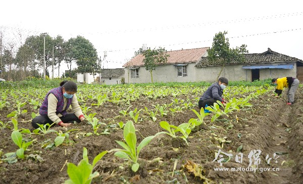 本刊消息 “老张,快过来搭把手,帮我理一下烟苗上的薄膜。”“要得,马上过来。”2月12日上午,记者来到麓棠镇石团村发现,往日宁静的村落悄然发生了变化,三三两两的村民走出家门,走入广袤的田野间,耕地、栽苗、覆膜,一派追赶农时、忙碌耕耘的景象。然而,与以往不同的是,村民们纷纷戴上了口罩,勾勒出一幅“防疫不误农时”的美丽画卷。 “这几天先不忙着给田浸水,温度还没升上去,早晚温度还低,水浸早了害怕死苗。”一大早,家住石团村3组的张世明一家人戴着口罩,扛着锄头下地忙碌起来。挖沟、理厢、栽苗,一家人忙得热火朝天。“寒露撒种,立春就该栽秧。这几天天气还好,要尽快把烟苗种下去,免得耽误了农时。”不一会儿,一块地全部锄完,张世明放下锄头,擦了擦汗水,又连忙来到另一块地里,和妻子一起将覆盖在叶烟上的薄膜撕个洞,让叶烟透出薄膜,接受阳光雨露的滋润。 张世明家今年种了1亩5分田的叶烟,指望着到了夏天叶烟能有个好收成,卖个好价钱。“我们都戴了口罩,进门出门前都会先消毒,每天一大早出门,中午提前回家,避免与其他人碰面,干活时也是尽量隔开分散进行,在种好叶烟的同时,也会防护好自己。”张世明告诉记者,这些天,村里每天都有人上门为他们宣讲疫情防控知识,劝他们最近不要出门,但眼看着年前地里撒下去的叶烟苗到了移栽的时候,他开始“坐”不住了,便和家人带着口罩出门忙起田里的事儿来。 在采访中记者发现,村民在地里忙着春耕,防疫宣传车也来到了田间地头,循环播放着疫情防控知识,提醒村民做好自我防护。此外,与往年不同的是,如今到田间劳作的村民每天都要“打卡”。“下田前先给大家测量一下体温,做一个登记,请大家配合一下。”在石团村齐开心种植合作社的叶烟地前,负责人孙元伟正在逐一对6名即将下田的村民进行体温检测。 “叶烟生长周期短,受温度和阳光影响较大,如果栽迟了还会影响到水稻种植的时间,所以耽误不得。”石团村党支部书记张世富告诉记者,全村共有200余户村民种植叶烟,种植面积达到450余亩,是村民实现增收的途径之一。如今正是叶烟种植的关键时期,为了不因疫情耽误农时,村干部纷纷引导村民分时段分区域分散开进行农事活动。同时,如果村民在耕种时需要任何农资产品,只需一个电话,村上的农资商店还贴心地提供“送货上门”服务。