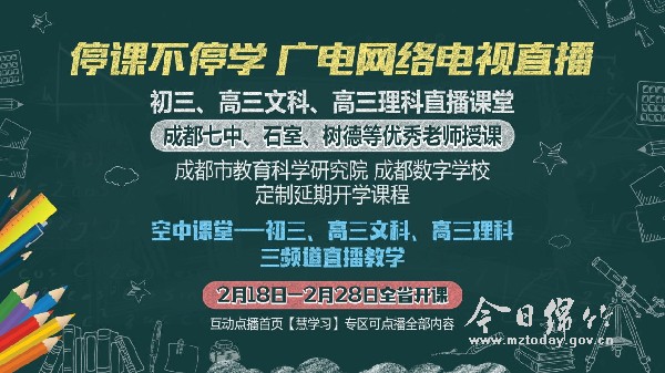 2月15日下午,记者从四川广电网络绵竹分公司了解到,为进一步做好“停课不停学”相关工作,确保直播课堂高质量传输,同时满足没有智能终端用户的学习需求,四川广电网络即将开通三套电视直播频道,于2月18日起,同步直播成都数字学校初三、高三直播课堂。 优秀老师在线授课 据了解,“停课不停学”初三、高三直播课由成都石室中学、成都七中、树德中学、成都七中育才、成都石室联中、成都树德实验等优秀老师执教,是成都市教育科学研究院、成都数字学校为延假毕业生定制的在线课程,覆盖毕业班全部学科。该课程按正常教学进度授课,合理制定学生每日学习计划和生活指南。提供具体复习策略,精选精练,通过课堂教学、互动答疑、点播回看、作业测试等服务,在学习过程中关注学生心理,确保学习效率。 广电网络全川直播 为了能让全川中考、高考学子共享优质教育资源,四川广电网络将于2月18日起,开通空中课堂—初三、空中课堂—高三文科、空中课堂—高三理科三套电视频道,连续十天,电视直播成都数字学校初三、高三延期课程。届时,全省学生在家通过广电机顶盒即可收看,再加上有线电视网络独有的传输方式,信号稳定、不卡顿,大屏看得更清晰,无其他网络信息干扰,孩子们学习起来也更加轻松、放心。绵竹广大师生可通过四川广电网络三个电视频道快速便捷的参与直播课学习,获得流畅的学习体验。 不仅可以看直播还可以回看 据介绍,四川广电网络电视直播频道的名称有三个,分别是空中课堂—初三频道;空中课堂—高三文科频道;空中课堂—高三理科频道,学生可根据成都数字学校发布的初三、高三课表,通过广电网络遥控器选择“空中课堂”频道收看。播出的时间是,2020年2月18-21日,2月24-28日,每天8:00-18:00,按课表准点直播。 而没有看上直播或需要再听一次课程的学生还可以通过广电网络互动电视“慧学习”栏目可点播回看直播课堂内容。每节直播课结束后半小时,即可点播。点播路径为四川广电网络互动电视首页—慧学习——成都数字学校专区。 四川广电网络绵竹分公司负责人表示,如无法正常收看,可致电广电网络24小时客服热线96655,该公司将第一时间派出维修人员,就有关操作事宜进行指导,或通过上门服务的方式解决收看问题,全力确保绵竹广大学生能正常收听收看。 (图片由四川广电网络绵竹分公司提供)