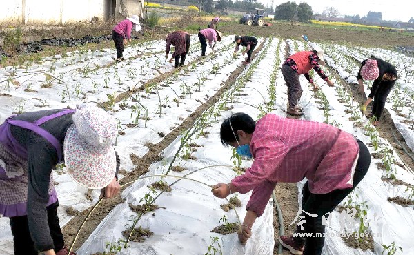 本刊消息 当下正值春耕生产关键时期,玉泉镇的村民正抢抓晴好天气,在做好疫情防控的同时,抢抓农时,投入春耕备耕。 防疫不放松 春耕不耽误 “疫情还没有结束,我还是要提醒大家,千万不要掉以轻心,不串门、不扎堆,出门一定要戴好口罩……”2月28日一大早,龙兴村党支部书记曾维泉和往常一样早早来到村广播室,当起了“播音员”,继续向村民宣传疫情防控的注意事项。随后,他又骑上摩托车,去一位村民家里看看需要的化肥送到没有。 搭建大棚框架、盖上塑料薄膜……在一处田地里,七八位村民正忙着栽种辣椒苗。“大家要保持距离,不要打堆。”曾维泉停下车,叮嘱劳作的村民。 “每天都能看到镇村干部巡逻宣传、听到大喇叭播放防疫知识,我们也充分认识到这次疫情的严重性,现在大家不走亲戚不串门、不扎堆摆龙门阵了,都一心一意忙生产。”村民张秀华说。 服务送下乡 农资送上门 “眼下正是小麦生长的关键时期,一定要做好当前的病虫害防治,加强田间管理……”3月1日上午,玉泉镇农业服务中心主任杨万华和农技人员正在桂花村指导种植大户尹显银进行小春病虫害防治。针对村民询问的如何提升油菜产量、质量的问题,杨万华边查看油菜长势,边讲解油菜栽种的技术要领,并对大家提出的难点、疑点问题,现场一一解答。 “为了不误农时,玉泉镇通过农技人员下乡为村民指导农业生产、送农资上门等举措,做到疫情防控、春耕备耕两不误。”杨万华告诉记者。 记者了解到,连日来,为全力做好农业生产物资供给保障、生产任务落实等工作,保障农资的供应,玉泉镇按照“自下而上统需求、自上而下搞配送”的方式,在全镇设立农资供应配送点,并制作出各个供应点的联系电话,由村组干部张贴到村组,分发到村民手中。村民只需电话订购,配送点就送货上门,既减少了人员流动和聚集,又有效保障了春耕物资需求。