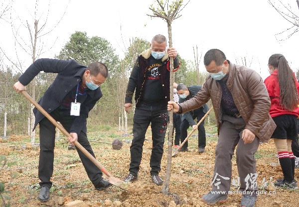 3月13日,富新镇开展了义务植树活动,在全镇范围内掀起了新一轮植绿护绿、美化家园的热潮。市委常委、政法委书记樊晓鹏参加了该镇义务植树活动。 当天下午,该镇机关干部、企事业单位工作人员、群众代表、志愿者干劲十足,大家三五成组,挥锹铲土、扶直树苗、培实新土,合力在三泉村文化广场种下一株株红梅树苗。不少在广场休闲的群众也主动拿起铲子,加入到义务植树的队伍中。 120株整齐排列的红梅树苗和点缀在草地上的月季花将三泉村文化广场装扮一新。