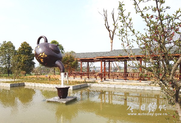 富新镇占地近60亩的三泉村村民文化广场上,绿草茵茵、桃花含俏。红梅树下,木质朱漆的文化长廊古韵悠长。池塘里,潺潺清流从悬挂的巨型紫砂壶中倾泻而下,激起粼粼碧波。农家书屋、石拱桥、环保厕所、康养中心……古典园林与现代化设施完美融合,景观分明、功能齐备,不仅优化了乡村环境,也为附近村民提供了一处景色宜人的休闲健身场所。 “看着眼前的美景,难以想象以前这里是一个废弃砖厂。”村民陈大姐说起废弃砖厂到文化广场的美丽蝶变,脸上满是自豪和喜悦。在她的记忆中,这家砖厂在80年代生产红火, 2011年以后逐渐废弃。几年过去,砖厂杂草丛生、垃圾成堆,与周围的环境格格不入。 为全面整治乡村环境,打造生态宜居、乡风文明的新农村,三泉村在废弃砖厂上启动了村民文化广场建设项目。废弃的砖墙被清洗干净,杂草、垃圾被清运走,植树栽花、打造景观,并以古朴的文化长廊和设计独特的池塘分隔出健身广场和休闲活动广场。 “以水景观将黑牛泉、古家泉、牧鸡泉展现出来,三泉汇聚一塘,意为所有村民心往一处想,劲往一处使,齐心合力把三泉村发展得更好。同时,还在文化长廊张贴了德孝文化、党建文化、法治文化等宣传画和村规民约,教育引导村民破除陈规陋习,树立文明新风。”据三泉村相关负责人介绍,该村村民文化广场从2019年9月开始动工建设,目前,健身广场、休闲活动广场以及长廊、水景观、环保公厕已经建设完毕,全面开放。农家书屋里正在陆续添置书架、桌椅,康养中心正在加速施工。