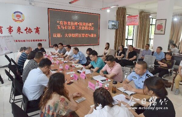 5月7日下午,紫岩街道玉马社区“有事来协商”——院坝协商第二次协商议事会召开。来自玉马社区的各界代表和市政协、相关部门、紫岩街道、四川天一学院等相关人员齐聚一堂,围绕大学城园区管理与服务主题,就大学城建立党群服务中心相关事宜进行协商座谈。 绵竹大学城目前有四川天一学院和四川传媒学院两所高校,辖区总人口近4万人,如何加强对辖区群众的管理和服务显得十分现实和必要。 会上,玉马社区党支部书记王兴君提出相关协商议事主题,四川天一学院副院长陈晓辉就大学城建立党群服务中心做好协调与服务工作、辖区社会治安、环境整治、联防联控等急需解决的问题进行了情况说明。 “按照市委组织部规范化建设要打造功能齐全、作用发挥、干净整洁、便民高效的党群服务中心。”“辖区派出所将加强对商家、出租房的摸排,加强治安管理及红丝带宣传阵地建设,加强群防群控。”“成立综合党支部,统筹协调各部门力量,共同做好大学城的管理与服务。”……市政协、市委组织部、教育局、民政局、综合执法局、疾控中心、紫岩街道、玉马社区、四川天一学院等部门、单位与会人员围绕主题,畅所欲言,发表了建设性的意见和建议。 市政协协商议事平台相关负责人说,街道和社区要充分利用市政协协商议事平台,针对需要解决的问题,大家踊跃发言,共同协商,推进基层社会治理,共同为大学城的管理和服务献计献策,希望把这种形式进一步完善和坚持下去。