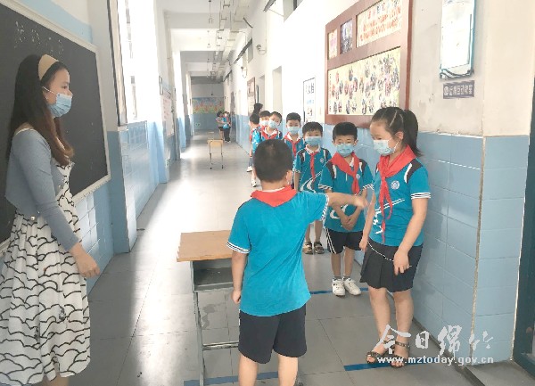 为进一步做好疫情防控工作,保障学校教育教学正常进行,近段时间,天河小学加强了对一至四年级复课学生的疫情防控常规训练,并从如何摘取口罩、洗手、课间操、如厕等方面进行了反复练习。 (图片由学校提供)