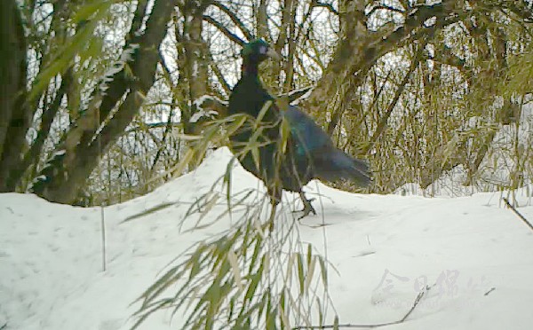 5月12日,据四川九顶山省级自然保护区绵竹管理站公布的一组由红外监测相机拍摄到的视频和照片资料显示,这次不仅拍摄到了野生大熊猫的活动影像,还拍摄到了有鸟中“大熊猫”之称的国家一级保护动物——绿尾虹雉。这也是绵竹首次在野外拍摄到绿尾虹雉活动的画面,反映出绵竹良好的生态环境和丰富的物种度,也为保存完整的生物多样性和生态系统结构提供了有力的数据支撑。 记者从相关视频资料看到,只见一只绿尾虹雉在厚厚的积雪里觅食,它不时东张西望,保持着敏锐的警觉性。画面中林木茂密,绿尾虹雉虽然被一枝竹子遮挡,但仍能清晰地看到它的羽毛色彩斑斓,闪耀着红铜、紫铜、绿铜的金属光泽,在积雪的映衬下显得更加高贵而神秘。 “绿尾虹雉是中国特有大型鸟类,也是我国特有的高寒珍稀雉类,被列为我国一级重点保护野生动物,有鸟中‘大熊猫’之称,世界性易危物种。”四川九顶山省级自然保护区绵竹管理站副站长廖亮介绍,绿尾虹雉主要分布在四川省西北部海拔3000米以上的高山地带,以及周围青海、甘肃、西藏相邻地区,适宜的栖息地是高海拔的草甸和灌丛,它们喜欢白天活动,出没于山脊地带,晚上栖于稠密的灌丛间或树的低枝上,放牧和采药等活动会对它们的栖息地造成一定程度的破坏。绿尾虹雉的毛色格外醒目,极易成为兀鹫、金雕攻击的目标。据有关资料报道显示,目前绿尾虹雉野外现存数量不足3000只。 (图片由绵竹市自然资源局提供)