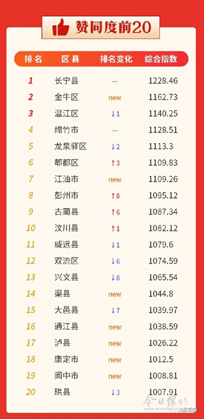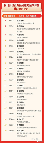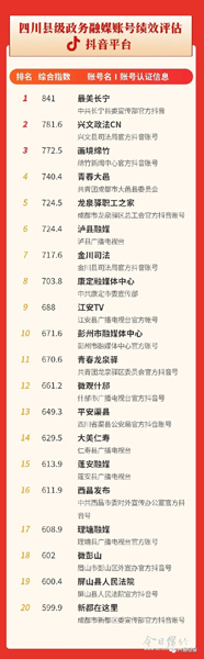 5月份赞同度位列全省第4,《画境绵竹》官方抖音位列全省第3,《今日绵竹》微信位列全省第15位