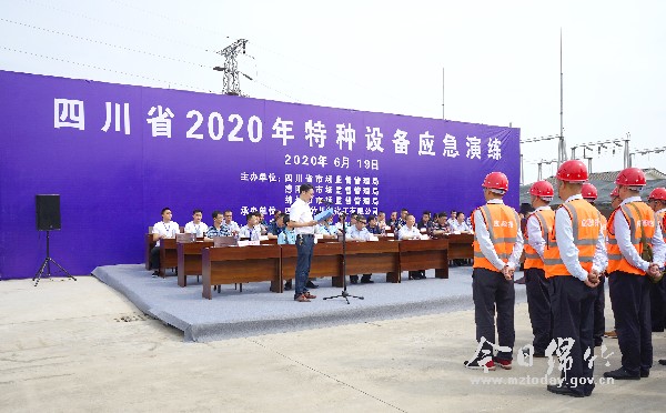 为进一步加强特种设备的安全监管,增强特种设备突发安全事故的应急处置能力,积累特种设备应急处置的经验和方法,6月19日上午,四川省市场监督管理局、德阳市市场监督管理局和绵竹市市场监督管理局联合主办的四川省2020年特种设备应急演练在我市举行。四川省市场监督管理局二级巡视员朱佑富,我市副市长、公安局局长黄和川参加演练。 演练分实战演练和桌面推演两部分进行。实战演练模拟四川绵竹川润化工有限公司4号氨罐输入管道焊缝发生裂纹,液氨向外喷射泄漏,液氨在空气中迅速气化,形成对人体有害的氨雾并四处扩散,危及群众生命财产安全。在事故发生后,四川绵竹川润化工有限公司迅速启动应急预案,立即停用4号液氨罐,开启喷淋系统,成立现场抢险指挥部,有序开展抢险救援。桌面推演四川绵竹川润化工有限公司液氨管道发生泄漏,10名工人在前期应急处置过程中中毒。接到报告后,德阳市市场监督管理局按照应急预案,有序开展应急处置工作。 朱佑富对演练作出点评。他指出,此次演练反应迅速、救援得当、指挥有序,验证了特种设备应急预案的科学性和实用性,积累了实战经验,取得了圆满成功。他要求我市要牢固树立“预防为主”的安全理念,进一步完善预案,强化应急救援队伍建设,加强宣传教育和培训,营造全社会广泛关注和参与特种设备安全的良好氛围。 黄和川表示,此次演练选择在我市开展,对提高我市应急演练水平,促进安全平稳健康持续发展具有重大意义。我市将以此次演练为契机,在全市范围内推广演练经验,做细特种设备日常管理工作,做实日常应急演练,做强应急管理整体工作水平,为经济社会平稳有序发展保驾护航。