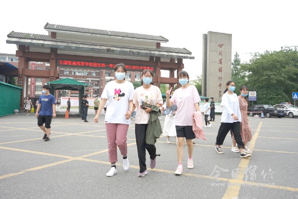十年苦读终亮剑,乘风破浪在今朝。7月7日上午9点,清脆的铃声响起,我市绵竹中学、南轩中学两个考点、57个考场上,齐刷刷的笔声奏响了1696名考生的追梦进行曲,2020年绵竹高考正式拉开了序幕。 早上7点,记者早早地来到绵竹中学大门口静待莘莘学子,距离考试还有一个半小时,绵竹中学考场外已经有不少学生、家长等候着,有的学生抓紧最后时间巩固知识,有的认真检查自己的考试用具,有的和同学一起相互加油。与往年不同的是,今年校门口增设了三个测温通道,到了8点整,在现场指挥人员的安排下,考生戴好口罩,手持考试袋,按照间隔一米的要求,秩序井然地排队经过测温区后进入考场。如果考生体温高于37.3摄氏度,将被带入安检通道一旁的复检处平静一会儿后,再次测量。 而在校门口外,一些家长亲自目送孩子进入考场后,便坐在了马路对面静静地等待。“加油,放轻松”“保持平常心”这是记者在考点外听到送考家长说得最多的话。记者注意到,为了给孩子讨个“好彩头”,不少家长准备了特殊的送考仪式。家长李女士精心打扮了一番,穿了一身红色旗袍,“旗袍寓意旗开得胜,希望用这样的方式为孩子加油打气。”她说,其实考得如何还要看孩子自己的发挥,作为家长只是希望用这种方式为他加油鼓劲,让他更有信心。 记者注意到,为做好新冠疫情防控工作,相关部门“硬核”为考生护航。今年全市两个考点都配备了防疫副主考和卫生防疫副校长,专职负责疫情防控和突发疫情事件处置,每个考点均制定应急处置预案,还配备1位医疗专家、1位护士和2名卫生防疫人员,配合考点体温异常的复测、处置的研判及应急医疗处置,全力护航高考。记者 申梨 文/图 责编:周静