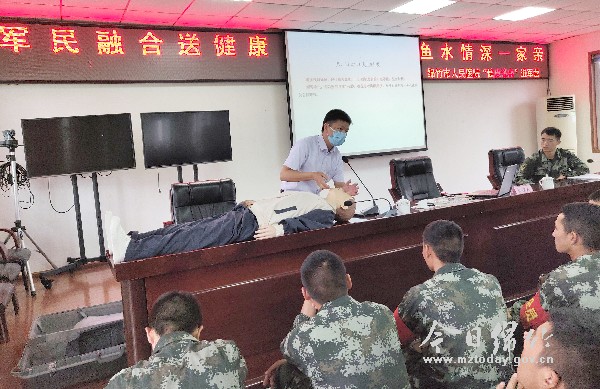 本刊消息 7月29日下午,华西绵竹医院的医务人员来到武警四川总队训练基地后勤专业训练队,开展了一场主题为“军民融合送健康,鱼水情深一家亲”的健康讲座进军营活动。 活动现场,医护人员们分别以“中暑的预防及急救”、“常见运动损伤及康复处理”为主题,用通俗易懂的语言,深入浅出地对中暑症状、防暑知识、腹泻防治与对策、心肺复苏急救措施等内容进行了详细讲解,并围绕战士平时训练中最易出现的运动损伤问题,分享了运动损伤的预防、急性损伤应急处理和损伤后康复训练等有效处理方法。同时,还对战士们的各种咨询疑问进行解答,讲座气氛活跃,受到了大家的一致好评和赞扬。 据介绍,华西绵竹医院秉承拥军光荣传统,多年来十分重视“双拥”工作,在积极做好正常医疗服务工作的同时,切实把为部队排忧解难作为开展军民共建工作的立足点,把为部队办好事、办实事当作共建工作的重要内容抓好落实。同时,进一步强化全院医务人员“双拥”意识,扎实开展“双拥”工作,形成了爱军、拥军和优待军人家属的良好氛围。 |