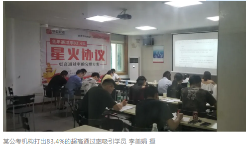 今年,为缓解就业压力,不少省份公务员招考增加了招录职数,公考报考一时火热。半月谈记者深入公考培训机构调查发现,当前火爆的公考培训背后,暗坑着实不少。 1 玩噱头、赌概率,“不过退款”稳赚不赔 近几年,以“国考”“省考”等为代表的公务员考试一直保持很高的招录比。辛苦备战公考,仍大概率落榜,让不少考生寻求“上岸”的确定性。瞄准这一需求,一些公考培训机构适时推出所谓的“协议保过”“不过退款”等保证协议。 “如果考不上还能收回学习费用,相当于买份保险。”一名公考考生说,公考培训班主要分协议班和非协议班两种,约定“协议保过”“不过退款”的是协议班。如果考生未通过考试,公考培训机构会根据协议条款全额退款,或扣除部分学杂费后再退款,以弥补考生损失。 在不少考生眼里,即使协议班学费比非协议班高出不少,他们也认为协议班“性价比更高一些”。2019届毕业生刘昊去年参加东部某市的事业单位考试,毫不犹豫地报了标价3万多的“封闭面试班”,最终被录用。“就当花钱买个心安。”刘昊说。 抓住考生“想赢怕输”的心理,一些公务员培训机构借势甩出“高价有理”的论调,将协议班学费标得高到离谱。南昌市井冈山大道上的华公教育价目表显示:“星火封闭笔试班”1.88万元,“星火笔面协议班”4.98万元,“星火笔面高端协议班”9.98万元。 相关工作人员告诉半月谈记者,4.98万元和9.98万元的班会签“不过退款”的协议。4.98万元班的考生落榜后可得到3万元的退款,9.98万元班的考生享受全额退款。 宛如“对赌”的“高价培训”是否“有理”?业内人士指出,这些高价协议班看上去是在为考生“兜底”,实则是稳赚不赔的“概率游戏”。培训机构靠设定退费比例来保证成本;靠赌通过率来获取全额高学费;靠占用预收学员资金利息增加盈利——每种花样都能赚钱,不过是赚多赚少的区别。 采访中,有些学员告诉半月谈记者,协议班退费其实并非易事,还要通过层层“关卡”——提交退费申请繁杂、申请受理后审核拖沓、工作人员百般刁难,退费犹如“褪层皮”。 今年7月中旬,中公教育因遭学员频繁投诉退费难而深陷“退费风波”,被市场监督管理部门点名。 2 欺诈营销坑你没商量 半月谈记者调查发现,公考培训市场是一块诱人的蛋糕,全职培训师月收入普遍在1万至3万元,兼职培训师一天数千元。高额利润驱动下,不少公考培训机构“坑你没商量”。 ——宣传坑。在微信公众号“江西公考在线”上,一家培训机构声称“领跑本土公考,通过率高达85%”。业内人士指出,公考笔试自然通过率不到10%,面试自然通过率30%多,两相叠加下,仅有3%的考生可以“上岸”,所谓85%的通过率是根本不可能的。