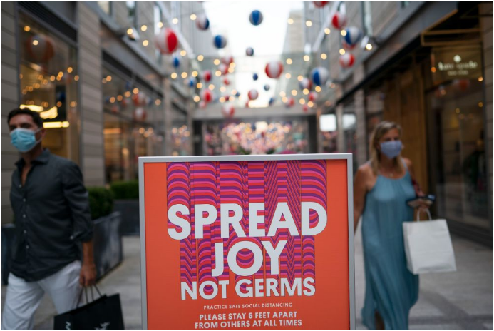 8月7日,美国华盛顿一处重新开放的购物中心竖立着提示人们保持社交距离的标识。(新华社记者 刘杰/摄) 世卫组织总干事谭德塞不久前表示,新冠疫情是“百年一遇”的健康危机,是有史以来第一次由冠状病毒引起的全球大流行,其传播性强、杀伤力大,所有国家都受到波及。新冠疫情不仅关乎生命,更关乎生计,触及健康领域以外的社会、经济、政治等各方面,许多国家经济大幅萎缩,经济下行又会引发其他效应,进而对未来几十年产生影响。 但他同时强调说,抗疫成功的希望仍然存在。有效应对新冠大流行需要各国领导人加紧行动,同时民众需要接受新的防疫措施。 做好抗疫“持久战”准备 世卫组织突发事件委员会8月1日宣布,新冠疫情仍然构成“国际关注的突发公共卫生事件”,并认为疫情预计将持续很长时间,强调社区、国家、区域和全球层面的持续应对努力十分重要。 委员会还建议支持相关的研发努力,包括提供资金并参与世卫组织主导的“获得抗击新冠肺炎工具加速器”的国际合作倡议等,一道努力推动公平分配诊断工具、疗法和疫苗;在资源不足、较脆弱或高风险环境中加强病例识别和接触者追踪的公共卫生监测,从资金、物资供应、人力资源等方面着手维持基本卫生服务;在风险评估基础上实施相应措施和旅行建议,并定期审查这些措施。