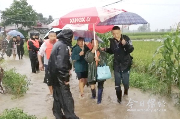 本刊消息 “屋里的水都齐我膝盖了,我们老两口年龄又大,如果不是派出所民警和镇村干部及时帮助转移,后果不堪设想。”回想起在暴雨中紧急转移的场景,富新镇杜茅村村民王永锡仍心有余悸。他告诉记者,8月16日凌晨3点,暴雨倾盆,由于红岩支渠内的河水漫堤,自家房屋地势低,河水倒灌入屋。正当他和老伴焦急如焚时,派出所民警和村组干部及时赶到现场,将王永锡夫妻转移到安全地带,并在他的房屋周围码上了砂石袋。 凌晨3点30分,在杜茅村五保户集中居住点,富新镇派出所民警正耐心劝说张大爷等三人转移。虽然穿戴有雨衣,但民警的衣服完全被雨水打湿。见三人终于点头答应,民警赶紧将大家转移至安全地带。 “孝德镇洪拱村内涝严重,不少群众被困。”凌晨4点,接到警情的孝德镇派出所民警立即赶往现场。此时,河水已经漫过沟渠,路面积水已至膝盖,民警冒雨前行,将被困的20余户群众成功转移至安全地带。 据悉,自特大暴雨发生后,绵竹公安全警出动连夜鏖战,在积水严重的干道拉起警戒线,实施交通管制;配合各镇(街道)党委政府对被困群众进行救援、转移和安置;抢救“搁浅”车辆、排查危险地段、做好地质灾害预警,为全市人民筑起了防汛安全屏障。 (图由公安局提供) |