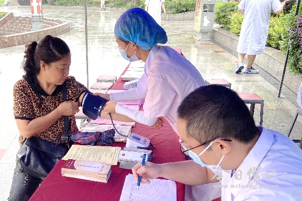 本刊消息 为庆祝第三个中国医师节,进一步营造尊医重卫的社会氛围,更好地为人民群众健康服务,8月19日上午,市卫健局组织开展了“8·19”中国医师节义诊活动。 “你眼睛出现这个情况多久了?”“最近的睡眠状态好不好?”……上午9点,在市区中心广场,来自华西绵竹医院、市中医医院、市妇幼保健院、市第三人民医院和仁爱医院的医师们开始了义诊活动。医师们耐心地为前来义诊的群众测量血压、询问病情,通过仔细了解他们的病史及以往的生活习惯,从不同方面为群众提供生活健康指导、医学常识和治疗建议。前来就诊的市民张雯告诉记者,听说今天有义诊活动,便专门带着母亲前来就诊,不用排队、不用等待,在了解了母亲的病情后医生给出了专业的健康指导,真是太方便了。 活动中,参加义诊的医师们纷纷表示,在中国医师节到来之际,能充分发挥自己的专业技术特长,用实际行动弘扬“敬佑生命、救死扶伤、甘于奉献、大爱无疆”的崇高精神,以为民服务的方式庆祝自己的节日非常有意义。