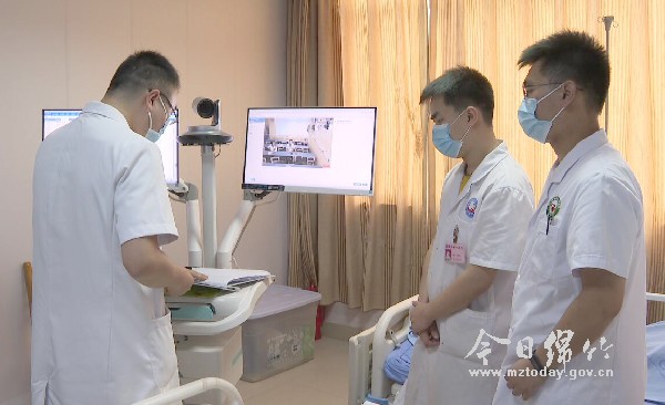 本刊消息 9月14日下午,在华西绵竹医院内三科一病房内,一场特别的"会诊"格外引人注目。“真感谢绵竹的医生,让我在家门口就能与华西医院的专家面对面交流。”因病住院的患者姚先生没想到,仅凭一台电脑和一个视频仪,就让他与远在成都的华西医院秦伟教授实现了“一对一”就诊,高效解决了自己的疑难杂症,避免了转诊困难等问题。 据该院内三科主任陈长云介绍,姚先生因免疫性疾病入住医院,由于病情严重,医生们为他联系了担任华西绵竹医院肾内科学科主任的华西医院秦伟教授进行会诊。这也是该院引入远程移动床旁查房系统后,实施的第一例远程会诊。 记者在现场看到,会诊中,秦伟教授与姚先生“近距离”接触,详细了解了患者的情况,并通过查房系统仔细查看了各种检验报告,根据患者病情提出了诊治方案。会诊结束后,参与连线的医护人员纷纷表示,“这既是一次‘远程查房’,也是一次‘基层带教’的新实践。” 据了解,远程床旁查房系统的运行,实现了华西绵竹医院与华西医院的互联互通和无缝对接,是该院与华西医院开展医联体建设后,实现“业务统一”的重要举措。在远程床旁查房系统下,华西绵竹医院的医务人员可参加和华西医院对应科室的病历讨论、阅片会、专业学术讲座、技能讲座、读书报告、科研指导、护理培训专场,还可以将病例拿出来让专家们讨论指导,不仅提升了华西绵竹医院的临床技术能力,更是解决老百姓看病难、找专家难、住院难等问题,降低患者就医费用,节省就医时间。