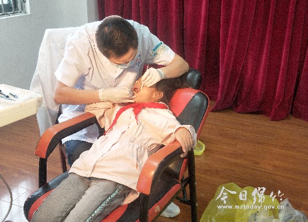 本刊记者 9月22日,由绵竹市口腔医院承担实施的四川省儿童口腔疾病综合干预项目走进板桥学校,为该校160余名适龄学生进行免费口腔健康检查、窝沟封闭防龋等儿童常见口腔疾病的诊疗。 “小朋友们要尽量选择含氟的牙膏。”“每天早晚都要刷牙。”当天,口腔医院医护人员走进板桥学校,给同学们宣传龋齿预防和口腔保健知识,通过现场互动模拟刷牙,向同学们展示正确的刷牙方法。医护人员还对该校160余名7至9岁适龄儿童进行免费口腔健康检查、窝沟封闭防龋等儿童常见口腔疾病的诊疗。 据介绍,实施儿童口腔疾病综合干预项目,目的在于宣传口腔健康知识,增强儿童口腔保健意识,帮助学生养成爱护牙齿、保护口腔健康的良好习惯,引导儿童和家长主动关注口腔健康,提高防治口腔疾病的意识和能力。自2010年该项目实施以来,每年绵竹市口腔医院医护人员都会走进学校,宣传口腔健康知识并对3000至5000名适龄儿童进行免费口腔检查,实施窝沟封闭术。 窝沟封闭是世界卫生组织向全世界儿童推荐的一种保护新生恒牙的方法,在发达国家该技术已经推广了100多年,大大降低了龋患率。一般窝沟封闭的最佳时间是7—9岁,此技术无痛无副作用,也不会影响孩子的生活与学习。家长可带适龄儿童到市口腔医院进行免费口腔筛查和窝沟封闭防龋。